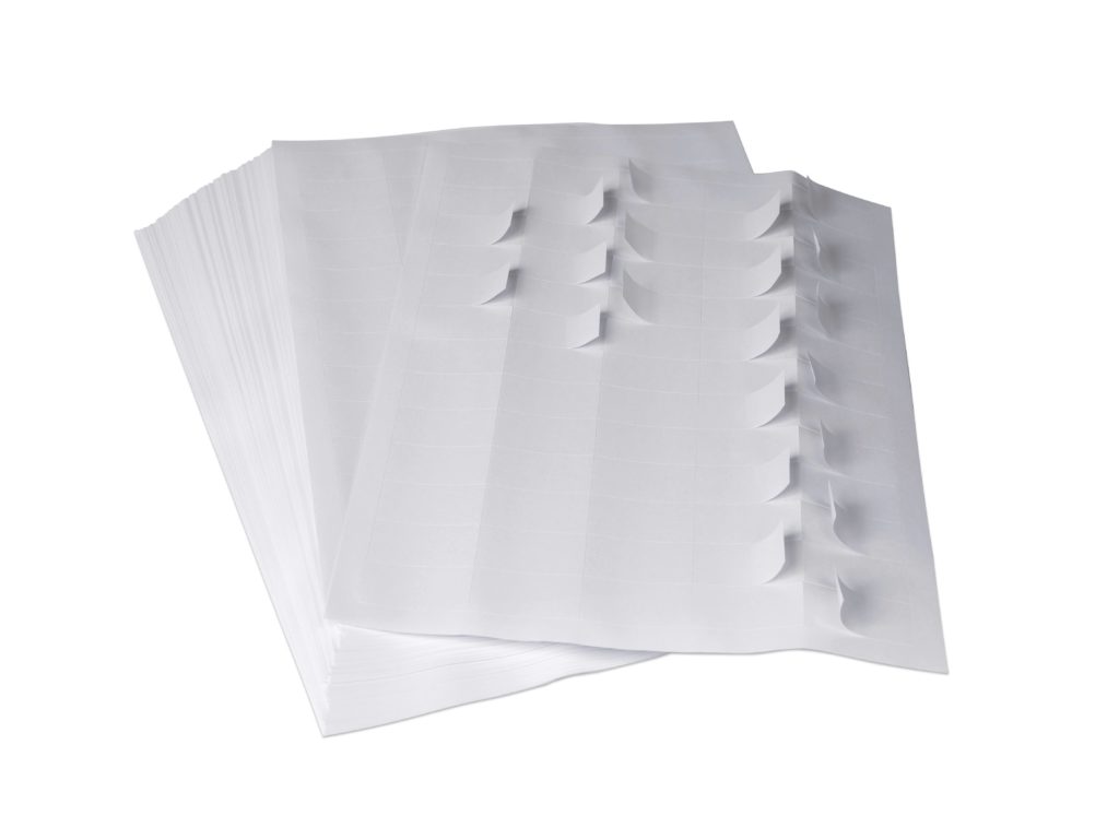 Self-adhesive label with various dimensions of cuts, on A4 sheets. Matte or glossy, ideal for further printing in laser, inkjet, copier and other types of office equipment. They are used to mark products, binders, letters and correspondence.